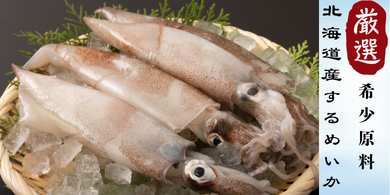 →北海道の海で獲れる新鮮なスルメイカは、しっかりとした厚みと濃厚な旨みが特徴です。噛むたびに広がる海の香りと甘みは、他では味わえない贅沢な美味しさです。