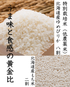 2)特別栽培米ゆめぴりか80%使用 — 安心の低農薬米、上品な甘み